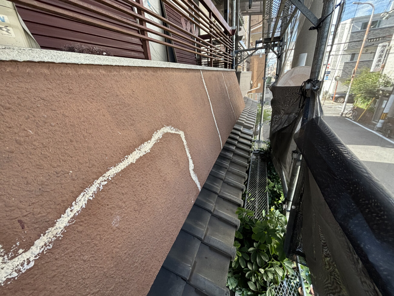 ベランダ部は、以前に違う業者でひび割れの補修をされた跡がしっかり残っておりましたので、そこも跡が目立たないように塗装させていただきました。