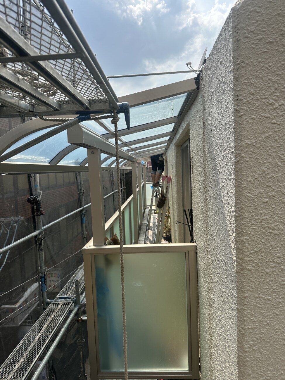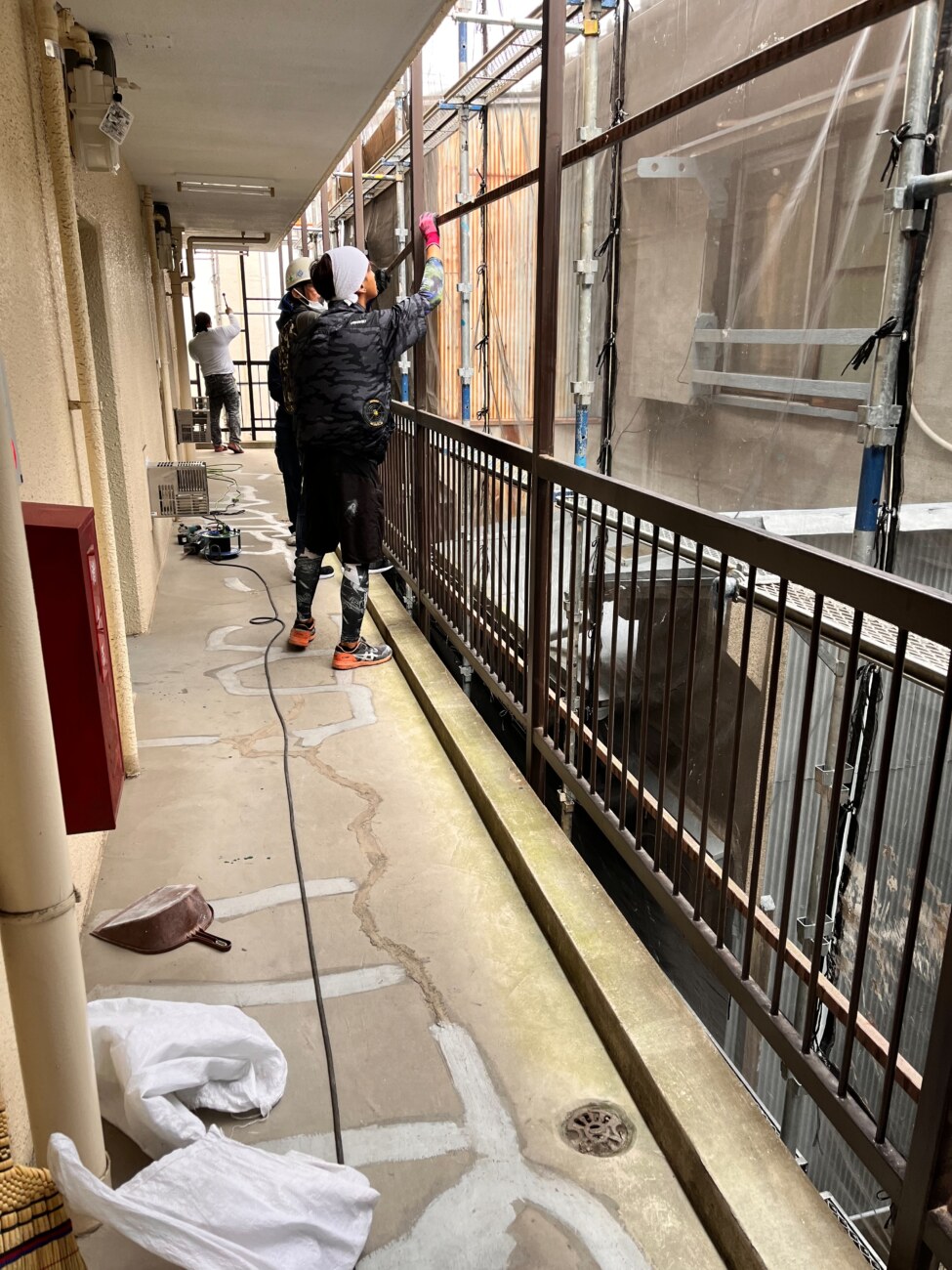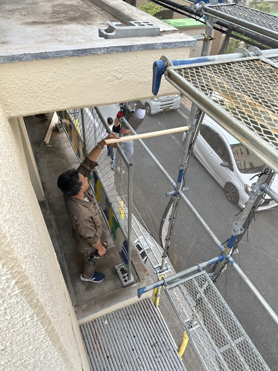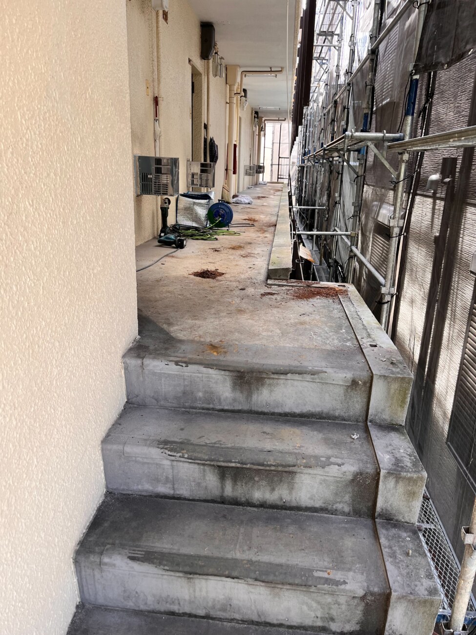 マンションのオーナー様から共用部廊下、階段、ベランダの柵交換とベランダテラス交換のご依頼をいただきました。