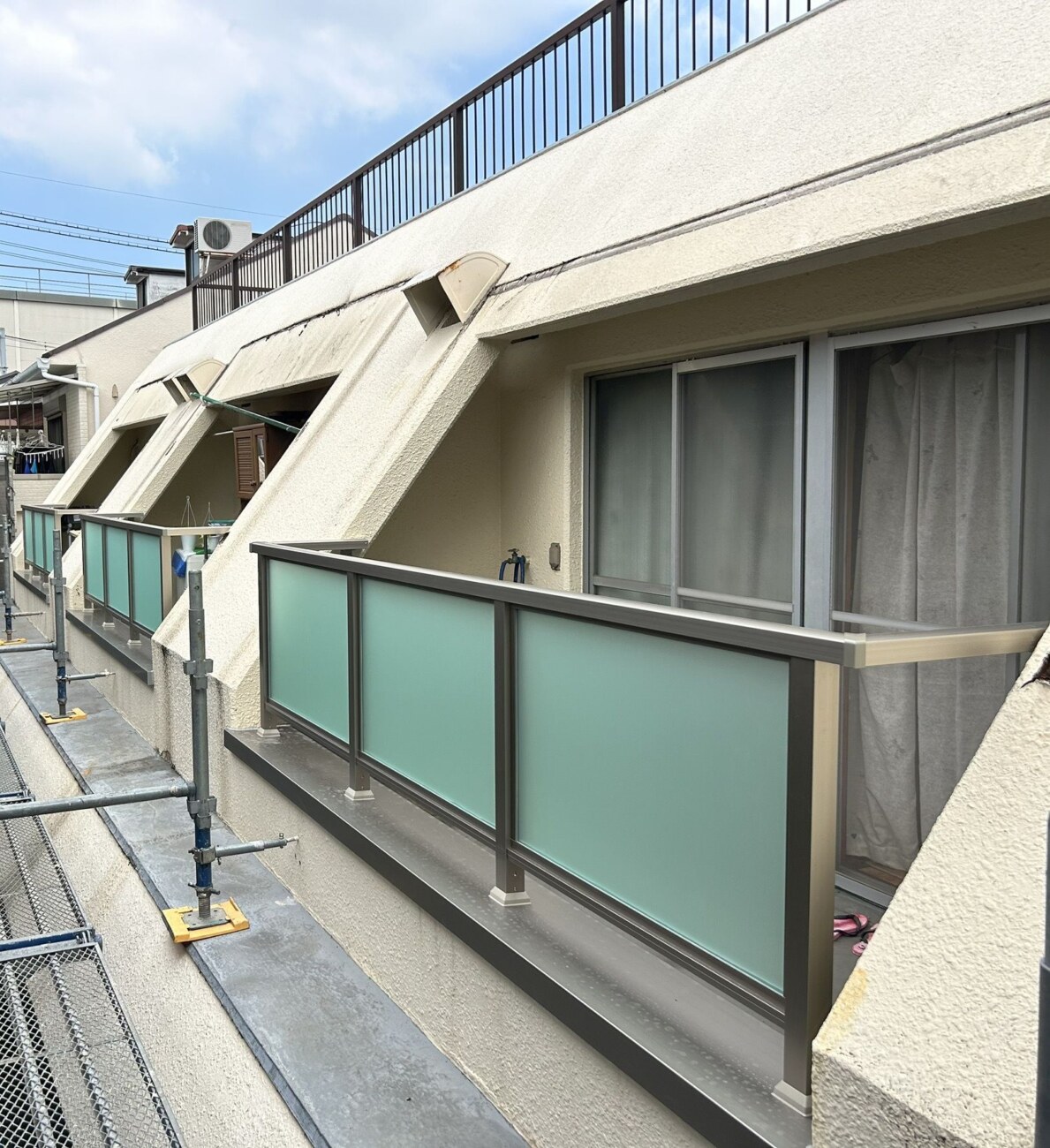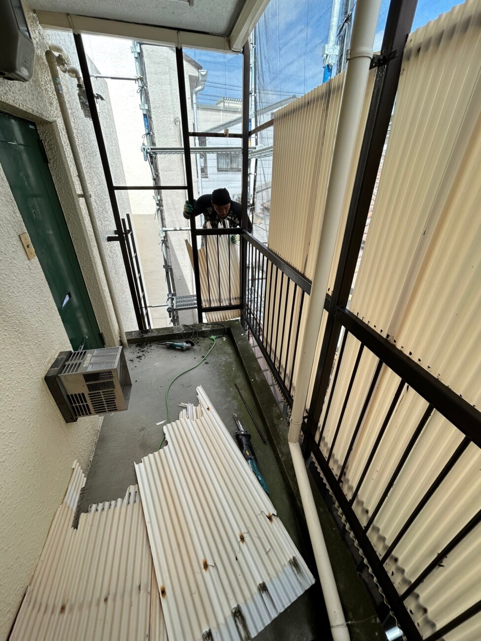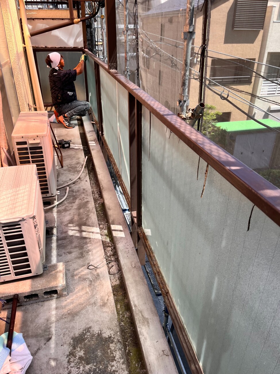 【マンションの修繕工事】共用部廊下、階段、ベランダの柵交換とベランダテラス交換|東住吉区
