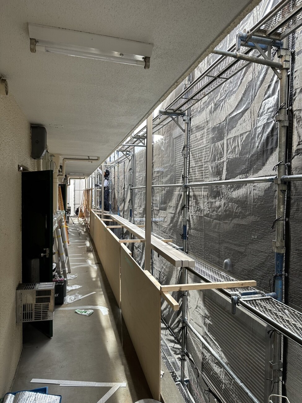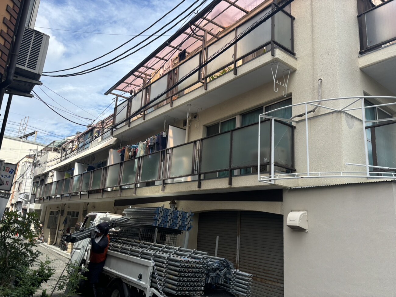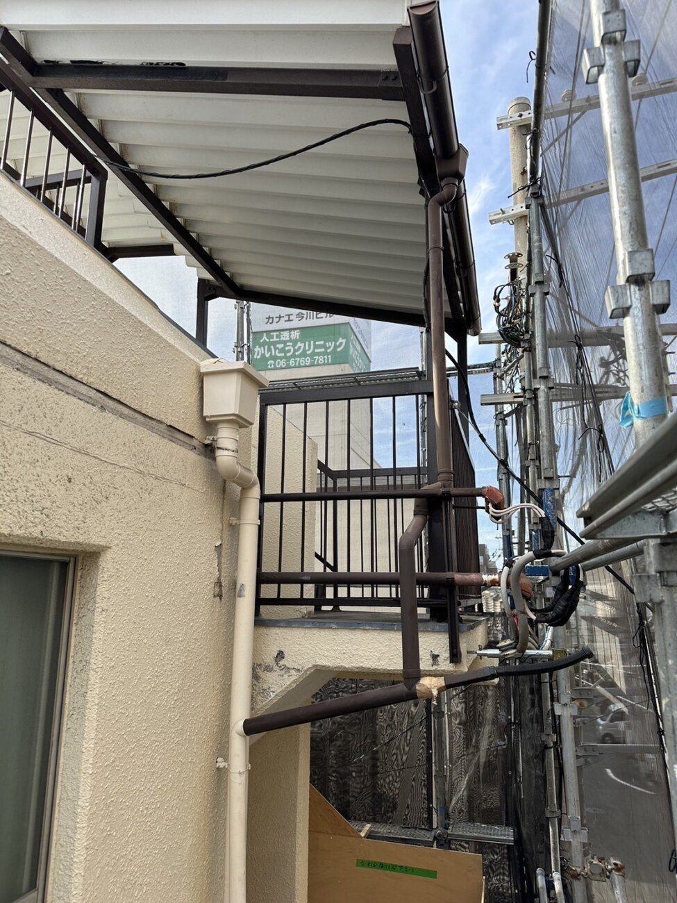 【マンションの修繕工事】共用部廊下、階段、ベランダの柵交換とベランダテラス交換|東住吉区