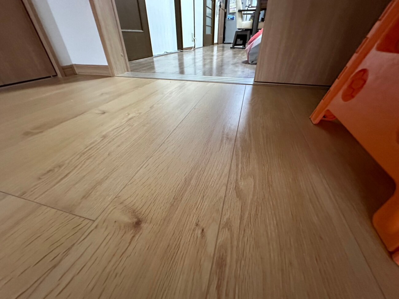 隣の部屋との段差解消、仕切りを洋風の引き戸へ変更、クロスも新品へ張り替えさせていただき、和室から洋室へのリフォーム等の工事をさせていただきました。