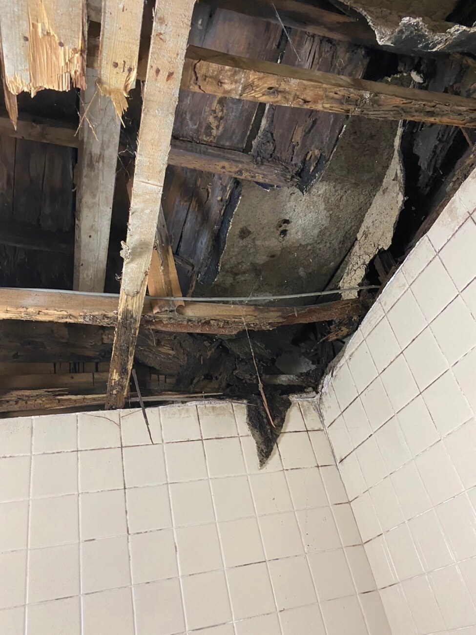 タイルの張ってある状態では、中がどんな状況かは確認できませんが、経験上、「壁のタイルに穴が空いている」「床や天井のタイルが変色している」という場合は、タイルの内側にシロアリが大量繁殖している可能性が高いですね。