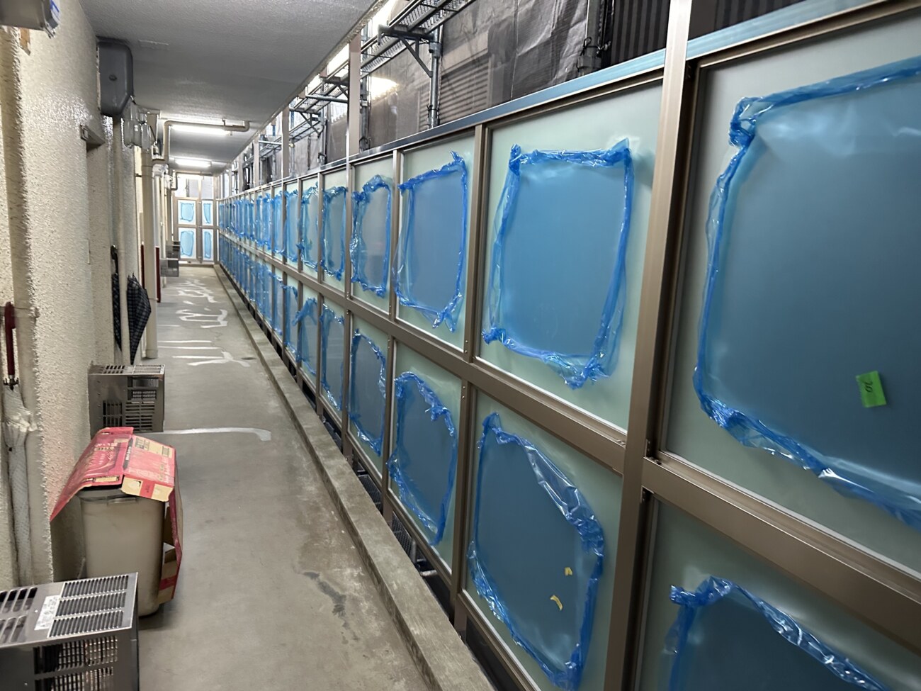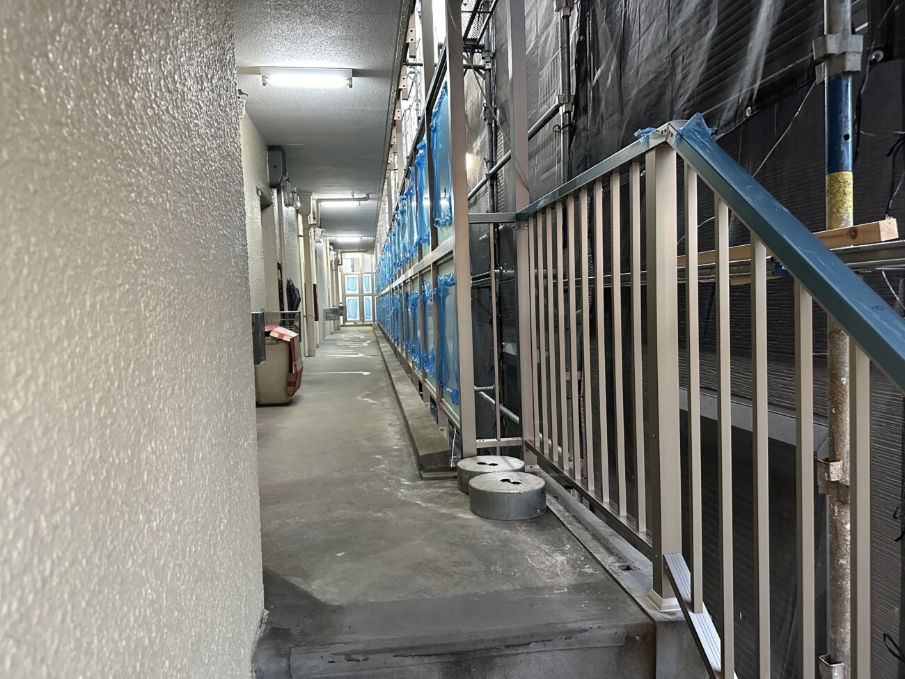 【マンションの修繕工事】共用部廊下、階段、ベランダの柵交換とベランダテラス交換|東住吉区