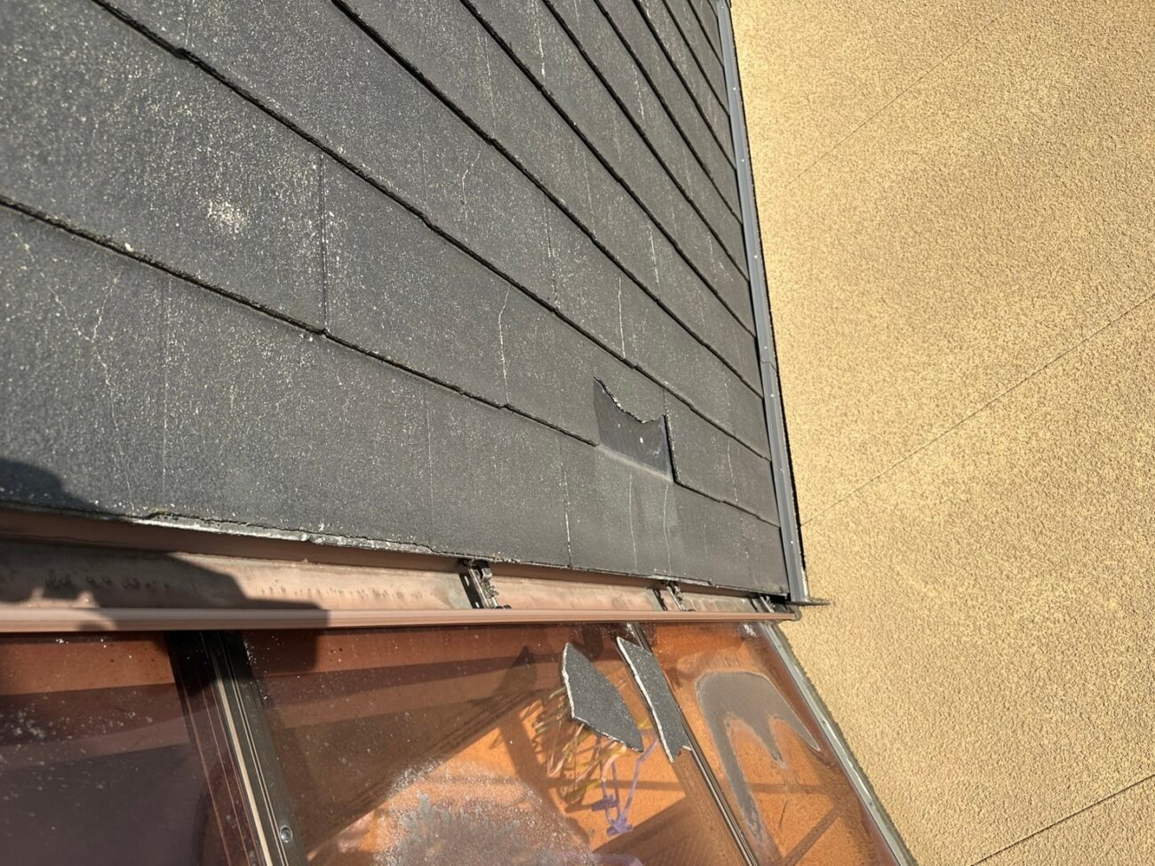 「屋根の破片が風で落ちたので、見に来てほしい」とのご連絡をいただきました。