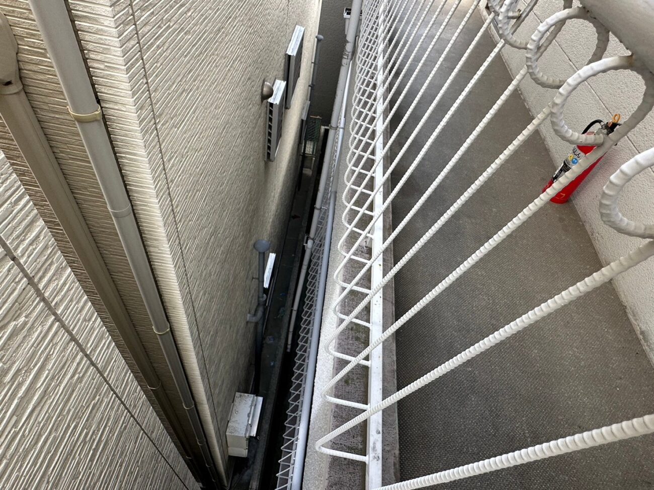 現地でさらに詳しくお話を伺うと、他社様から「お隣との家の間が狭すぎて、一部の塗装はできません」と断られたとのこと。