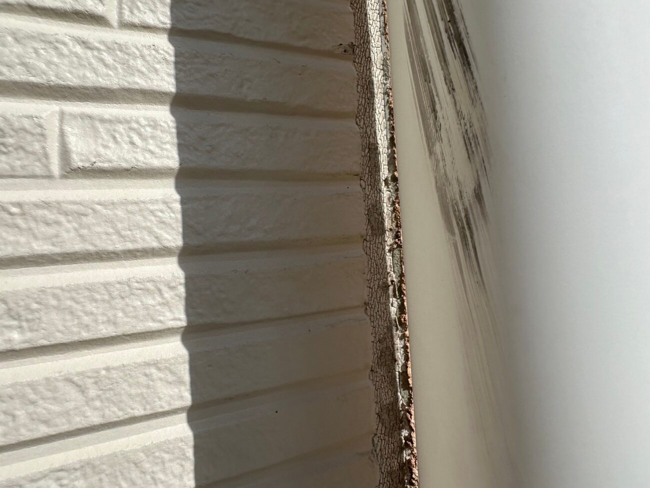 実際にご自宅にお伺いして拝見したところ、外壁とシーリングの経年劣化が進行しており、特にシーリングの劣化が目立つ状態でした。