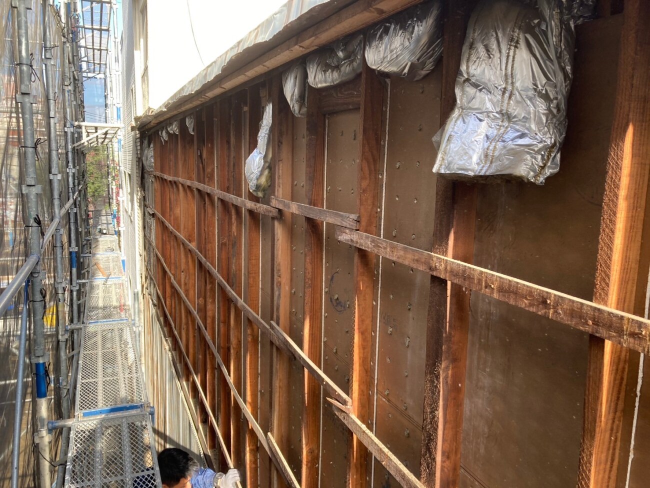 建物と建物に隙間がなかったため何十年も外壁の状態を確認できなかったので心配されていました。