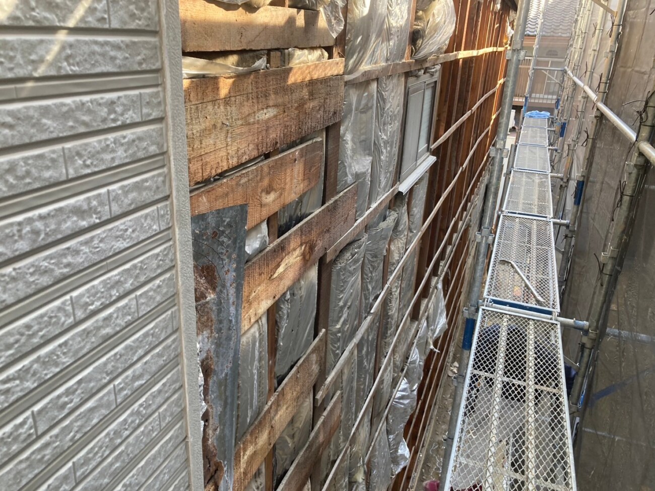 「長屋でお隣の家が取り壊ししたので、今まで見えなかった外壁の状態を見て欲しい」とご相談したいとお問い合わせいただきました。